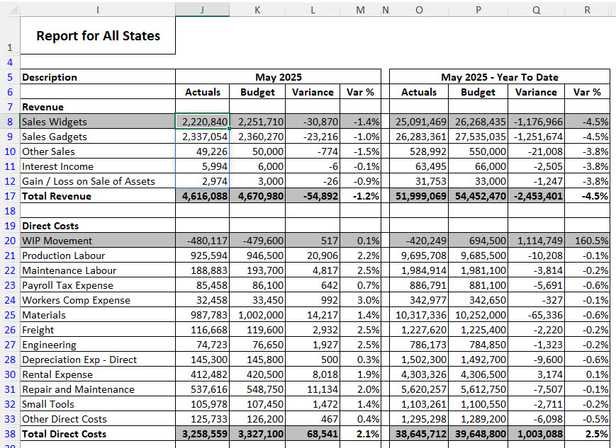 Excel Reporting Solutions Month and YTD